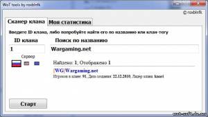 WoT Clan Scanner + SelfStats Автор: roxblnfk Программа используется для сбора информации о кланах: краткое описание, владения, техника клана по игрокам, статистика всех игроков в одной таблице, и т.п. Плюс, добавлена возможность просмотра подробной своей статистики.