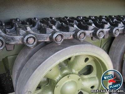 | Практически все танки в истории имели гусеничный движитель, прототип которого был запатентован ещё в 1818 году французом Дюбоше, однако некоторые танки, например, лёгкие колёсно-гусеничные танки БТ (СССР) или танк Кристи (США), могли передвигаться на колёсах. Гусеничная конструкция ходовой части позволяет танку без труда передвигаться в условиях бездорожья, по различным типам грунтов. Гусеницы современных танков стальные, с металлическим или резинометаллическим шарниром, по которым танк едет на опорных катках как правило, обрезиненных. В некоторых моделях верхняя часть гусеницы, провисая, опирается на опорные катки, в других используются специальные поддерживающие катки малого диаметра. Как правило, в передней части находятся направляющие колёса, которые совместно с механизмом натяжения обеспечивают требуемое натяжение гусеницы. Гусеницы приводятся в движение посредством зацепления их ведущим колесом, крутящий момент на которое подается от двигателя через трансмиссию. Путём изменения скорости перематывания одной или обеих гусениц танк может совершать поворот, в том числе и разворот на месте. Передача крутящего момента от двигателя к ведущим колёсам происходит благодаря фрикционной муфте. Важным параметром является площадь той части гусеницы, которая контактирует с землей (опорная поверхность гусеницы), точнее, отношение массы танка к этой площади — удельное давление на грунт. Чем оно меньше, тем по более мягким грунтам может двигаться танк, т. е. тем выше его опорная проходимость. Но при всех достоинствах ходовые гусеницы имеют и серьёзный недостаток — они сравнительно легко могут быть перебиты прямым попаданием в гусеницу снаряда или в случае наезда танка на противотанковую мину нажимного действия. Это, в частности, подвигло советских танкостроителей попытаться создать танк на воздушной подушке, но уровень доступных технологий не позволил создать такой танк. Привлекательна и идея танка-шагохода — танка на шагающем ходу. Танк-шагоход действительно имел бы намного большую проходимость по пересеченной местности в сравнении с гусеничным или колёсным танком, но имеющиеся в настоящее время технологии пока не позволяют создать достаточно эффективный танк-шагоход. В фантастике нередко фигурируют «парящие» танки — чаще всего антигравитационные — обладая всеми достоинствами судов на воздушной подушке (в том числе амфибийностью) такие танки не имеют некоторых их недостатков. Возможно когда-то в будущем будут созданы и такие танки, но вряд ли они смогут полностью вытеснить с поля боя гусеничные и шагающие танки будущего. Все танки имеют систему подрессоривания (подвеску) — совокупность деталей, узлов и механизмов, связывающих корпус машины с осями опорных катков. Система подрессоривания предназначена для передачи силы веса танка через опорные катки и гусеницу на грунт, для смягчения толчков и ударов, действующих на корпус танка, и для быстрого гашения колебаний корпуса. От качества системы подрессоривания в большой степени зависят средние скорости движения танков по местности, меткость огня с ходу, работоспособность экипажа, надёжность и долговечность работы оборудования танка. | |